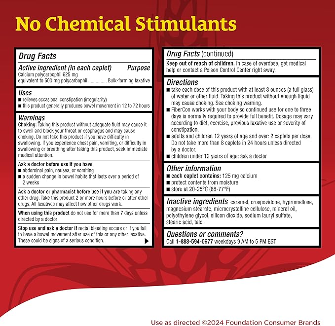 - Simple Constipation Relief: FiberCon coated caplets help relieve constipation as effectively as fiber powders but without the messy mixing and uncomfortable side effects.