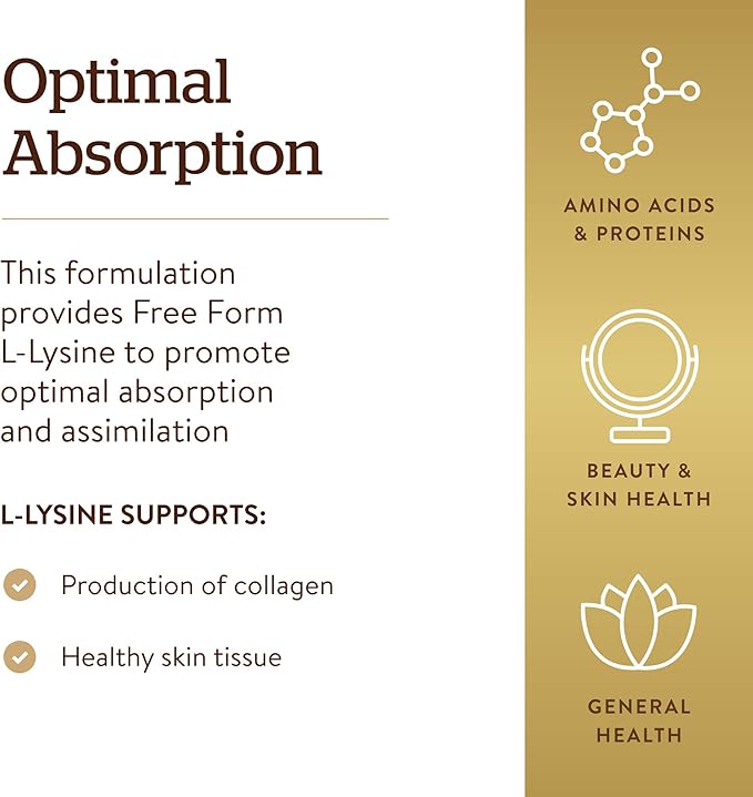 - Optimal Amino Absorption; The free form lysine in this dietary supplement promotes optimal absorption and assimilation because it is highly bioavailable