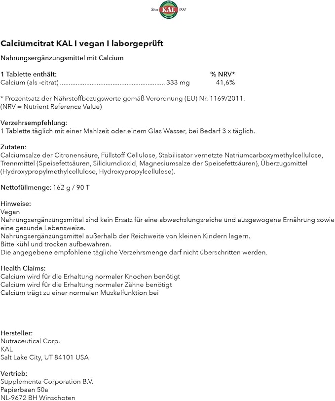 KAL Calcium Citrate, 1000 mg, 90 Tabs