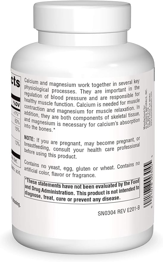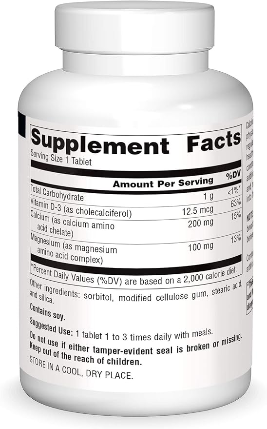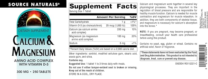 Source Naturals Calcium & Magnesium, Amino Acid Complex with Vitamin D-3, 300 MG - 250 Tablets