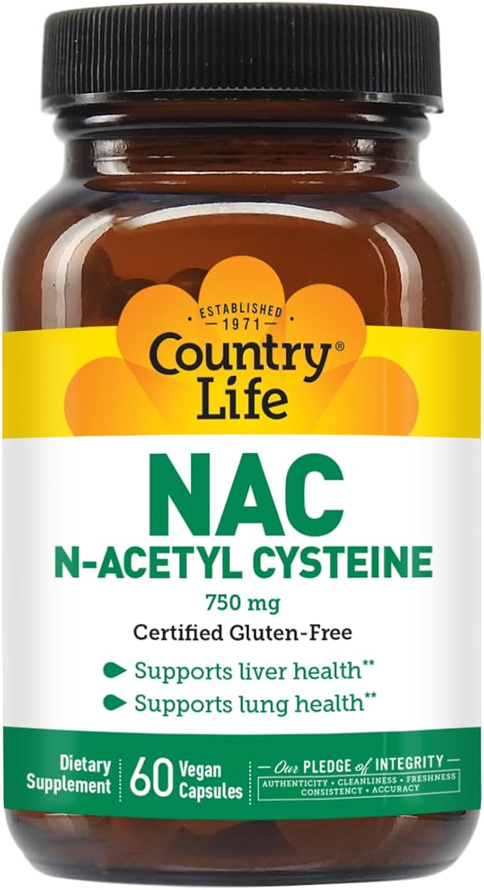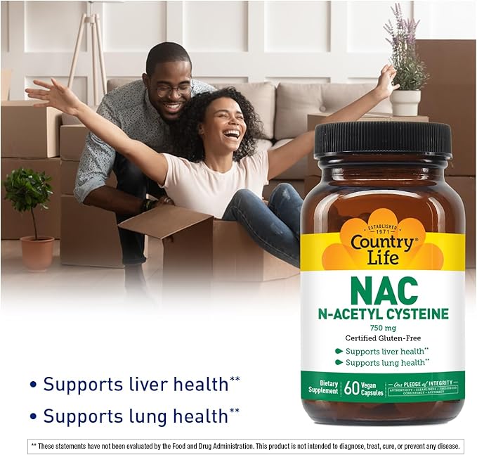 - Liver and Lung Health – Country Life's N-Acetyl Cysteine (NAC) 750 mg supports both liver health and lung health by promoting detoxification and offering antioxidant protection. This supplement helps ensure overall well-being.