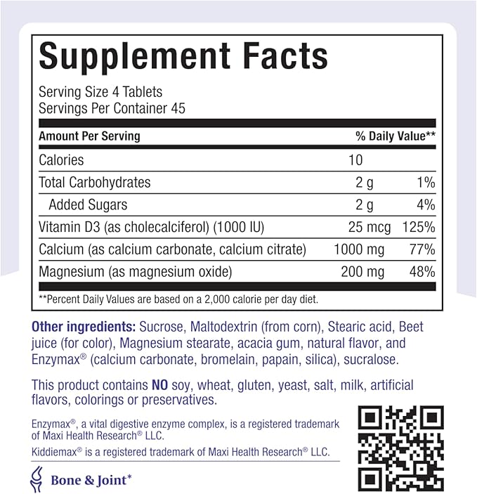 Maxi Health KiddieMax Calcium - CalciYum! - Flavored -Animal Shaped Chewies - Kosher (180 Count)