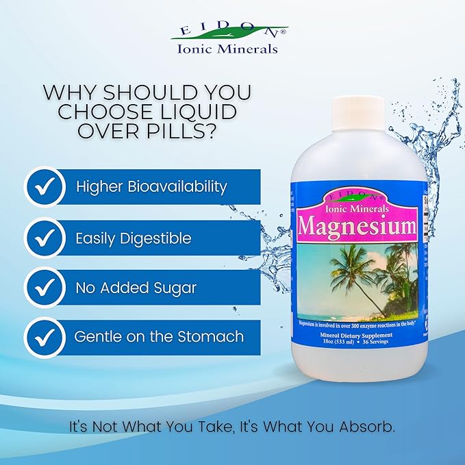 - IONIC MAGNESIUM LIQUID SUPPLEMENT - Supplementing with Ionic Magnesium Supports the Immune System, Muscle Relaxation, Tissue Growth, and helps Regulate Calcium Transport & Deposition into the Bone