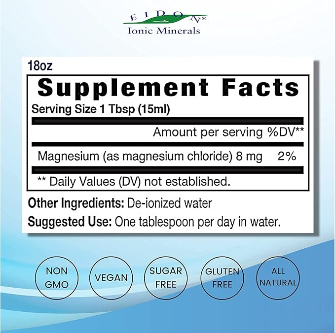 Eidon Liquid Magnesium Concentrate - Ionic Magnesium Drops Supplement for Adults, Men and Women, Supports Muscle Relaxation, Bioavailable, No Additives or Preservatives - Magnesium Chloride, 18 oz