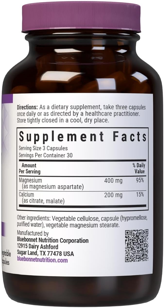 Bluebonnet Nutrition Magnesium & Calcium 2:1 Ratio, Bone Health*, Non-GMO, Vegan, Kosher Certified, Gluten-Free, Soy-Free, Dairy-Free, 90 Vegetable Capsules, 30 Servings