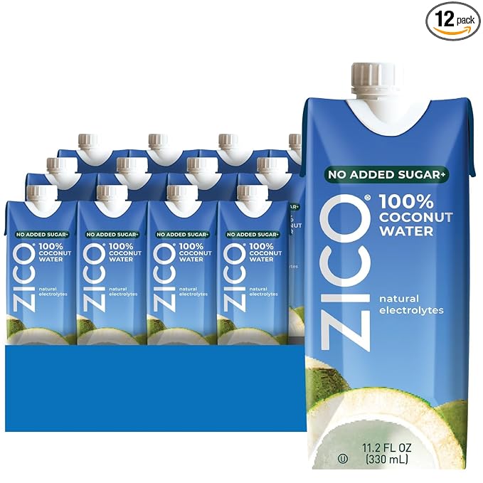 Zico 100% Coconut Water, No added Sugar, Refreshingly Delicious, Hydration with Electrolytes, 11.2 Fl Oz (Pack of 12)