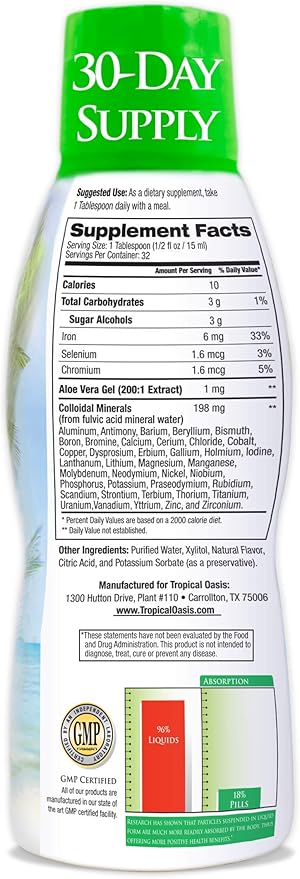 Tropical Oasis - Premium Ionized Plant Based Trace Minerals Liquid Formula- 74 essential minerals in liquid form for up to 96% Absorption - 16 oz, 32 servings