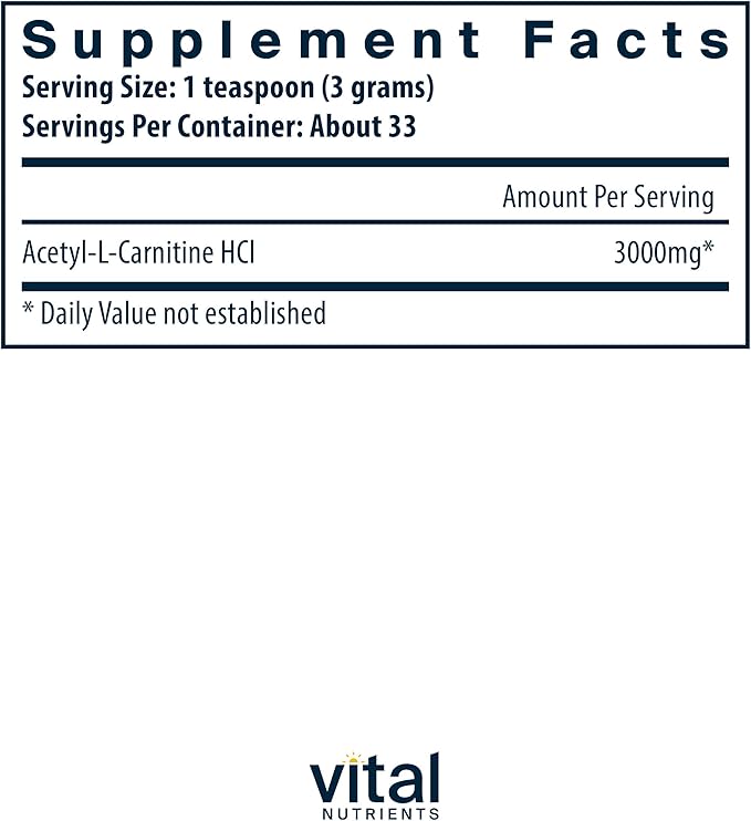 Vital Nutrients Acetyl L-Carnitine Powder | Brain, Memory, and Cognitive Support Supplement* | Vegan | Gluten, Dairy, Soy Free | Non-GMO | 100 Grams