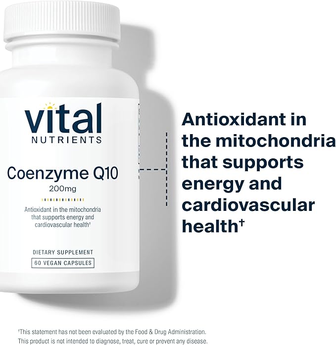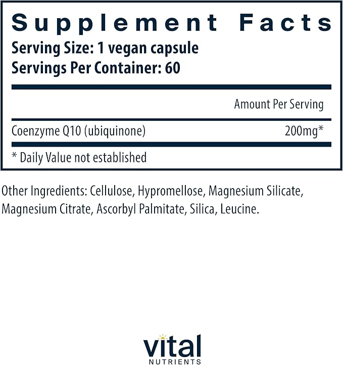 Vital Nutrients CoQ10 200mg | Vegan Supplement | Potent Antioxidant of CoEnzyme Q10 to Support Heart Health and Energy Levels* | Gluten, Dairy and Soy Free | Non-GMO | 60 Capsules