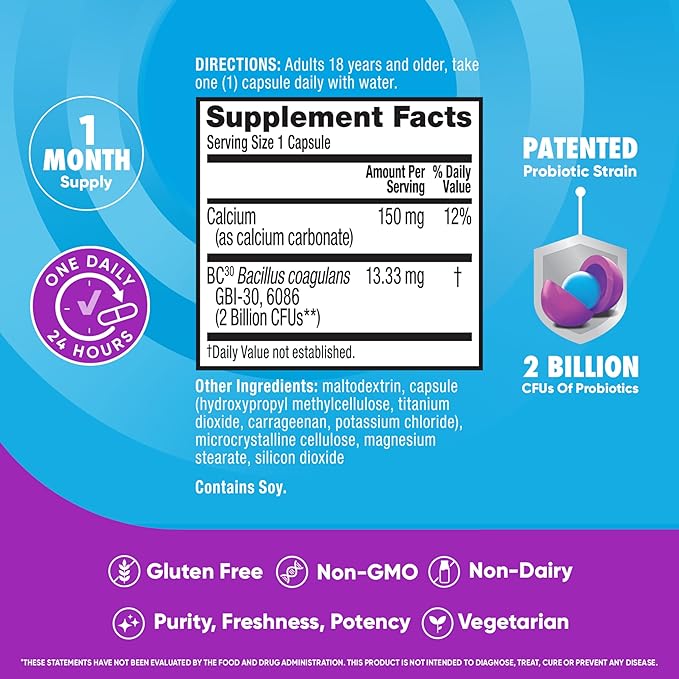 - 100X BETTER: 2 Billion CFUs of patented BC-30 probiotics survives stomach acid 100X BETTER vs. yogurt