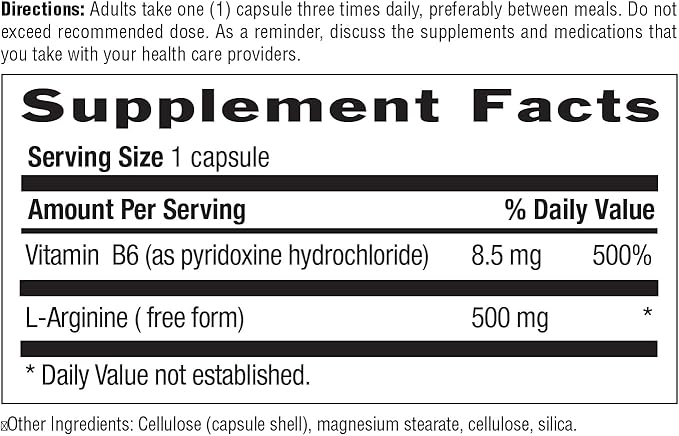 Country Life L-Arginine Caps with Vitamin B-6, 500mg, 200 Vegan Capsules, Certified Gluten Free, Certified Vegan