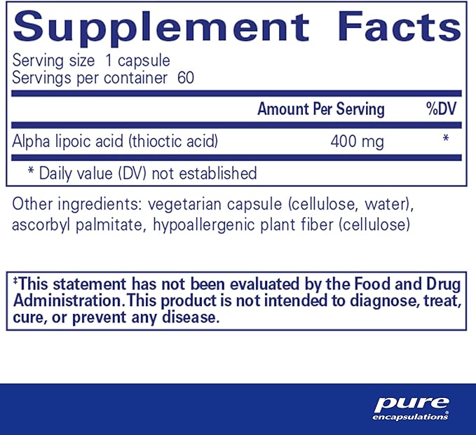 Pure Encapsulations Alpha Lipoic Acid 400 mg | ALA Supplement for Liver Support, Antioxidants, Nerve and Cardiovascular Health, Free Radicals, and Carbohydrate Support* | 60 Capsules