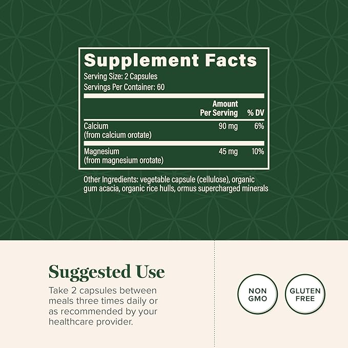 - Pure 2:1 Form - Magnesium & Calcium orotate are free of gluten, soy, dairy, GMOs, nuts, sugar, artificial flavors, synthetic dyes, and toxic fillers. Pair with our Suntrex D3 for a source of vitamin D to increase the body's ability to absorb calcium better.