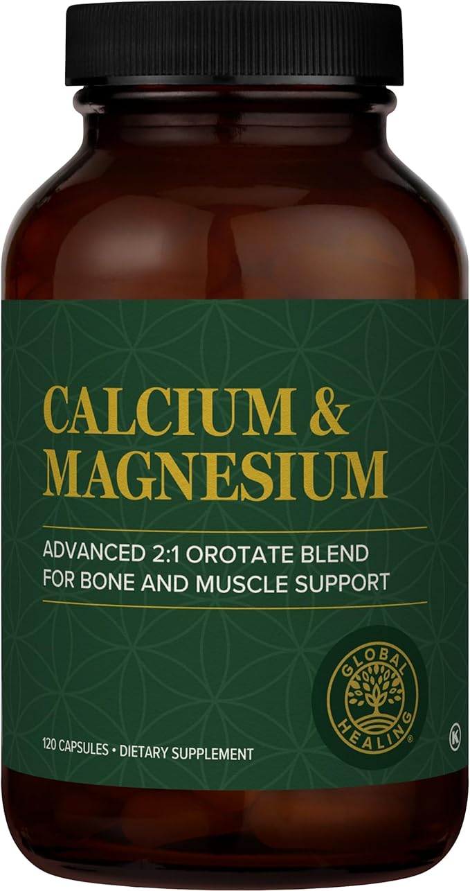 Global Healing Calcium and Magnesium Orotate - Bone Strength Supplement for Women and Men - Helps Support Strong Teeth and Cardiovascular Health for Normal Muscle Function - 120 Capsules