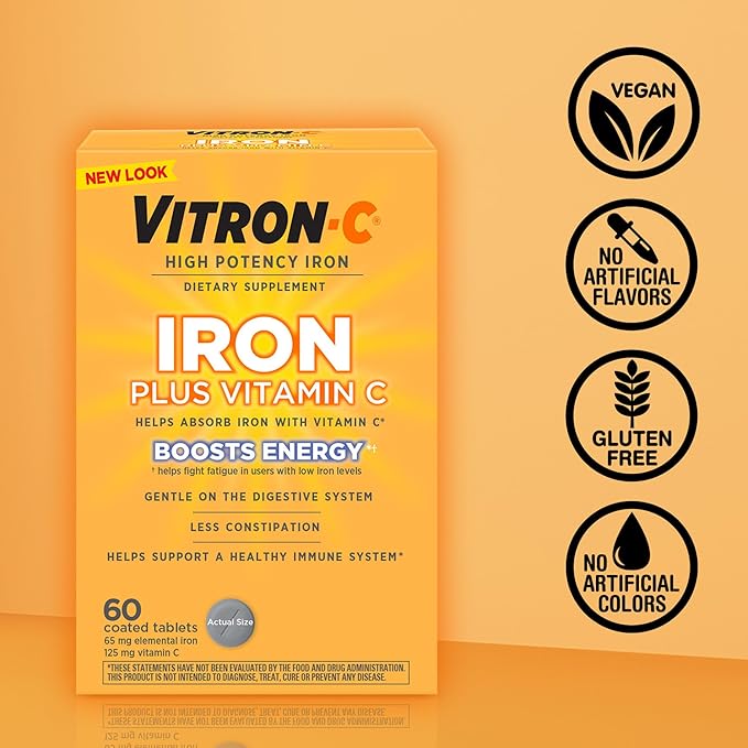 Vitron-C Iron Supplement, Immunity Support Iron Supplements with Vitamin C, Iron Pills for Immune Support, 60 Count