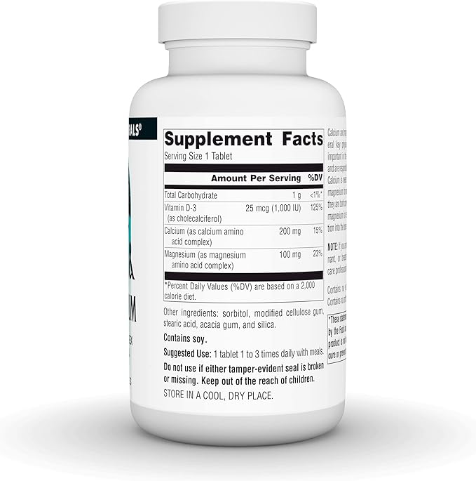 Source Naturals Calcium & Magnesium, Amino Acid Chelate with Vitamin D-3, 300 MG - 100 Tablets