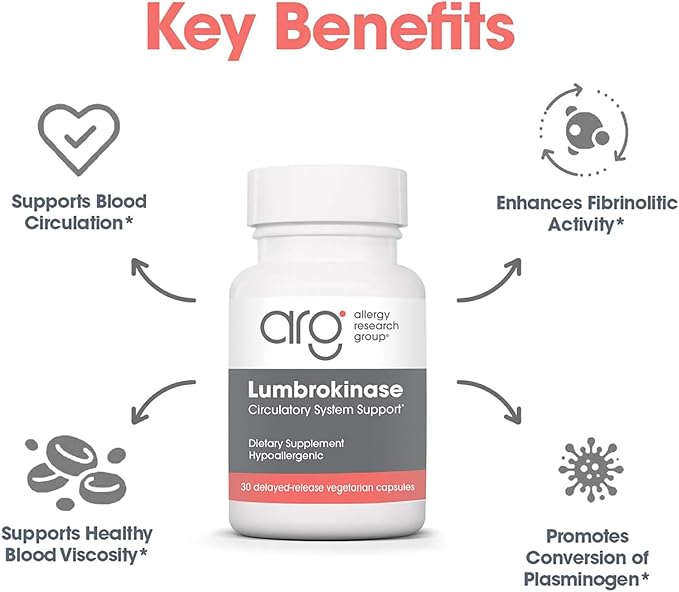 Allergy Research Group Lumbrokinase Supplement - Circulatory System Support, Supports Blood Circulation Already in The Normal Range - 30 Delayed Release Vegetarian Capsules