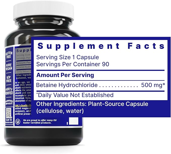 - BETAINE HCL COMPOSITION: Our Quantum Nutrition Labs supplement is expertly crafted of betaine hydrochloride, a vital supplement that maintains optimal stomach acidity for efficient nutrient absorption