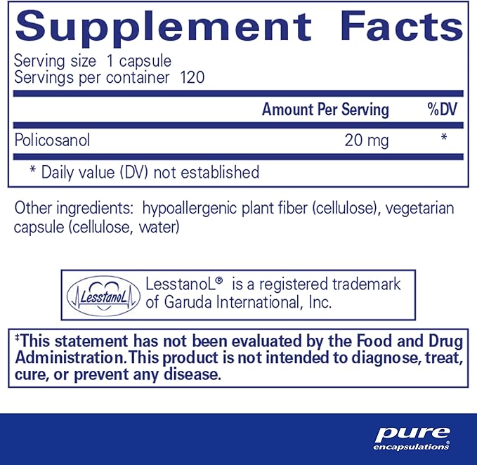 Pure Encapsulations Policosanol 20 mg | Hypoallergenic Supplement Supports Healthy Lipid Metabolism and Cardiovascular Function | 120 Capsules