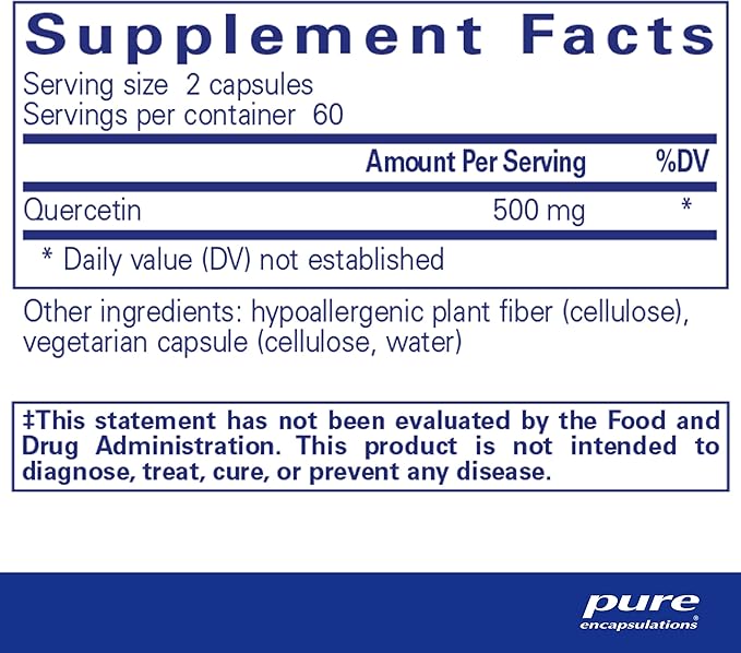 - Quercetin Supplement: Pure Encapsulations Quercetin contains 500 mg of high-concentration quercetin per serving