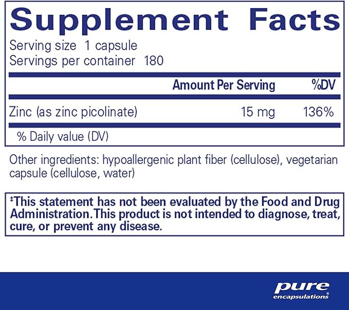 Pure Encapsulations Zinc 15 mg - Zinc Picolinate Supplement for Immune System Support, Growth & Development - for Wound Healing - 180 Capsules