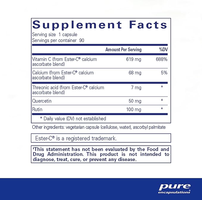 Pure Encapsulations Ester-C & Flavonoids - Vitamin C Supplement for Antioxidants - Immune & Vascular Support* with Calcium & Rutin - Gentle on Digestion - Vegan & Non-GMO - 90 Capsules