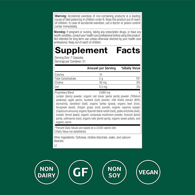 - Supplement Dosage for Liver Health: To support liver and kidney function, take seven capsules, three times per day on an empty stomach or with a nutritional supplement shake