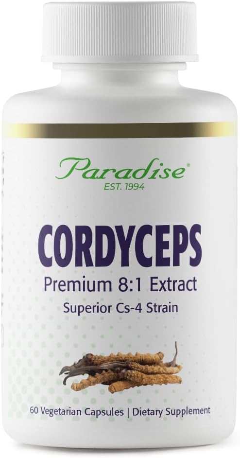 Paradise Herbs Cordyceps CS-4 Extract, Super Potent, Ultra Pure, Vegan Antioxidant, Non GMO, Gluten Free, 60 Vegetarian Capsules