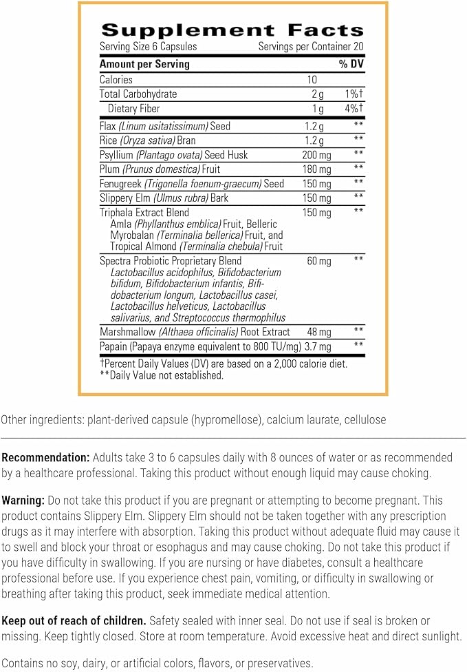 - Gastrointestinal Support*: Includes Triphala, fiber (flax, rice bran, and psyllium), to help support gastrointestinal health*