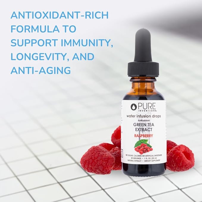 Pure Inventions - Green Tea Raspberry Water Infusion Drops - Antioxidants & Electrolytes - Health & Wellness Drink - Immunity Support - Sugar Free, Zero Calorie, No Artificial Sweeteners - 30 Servings