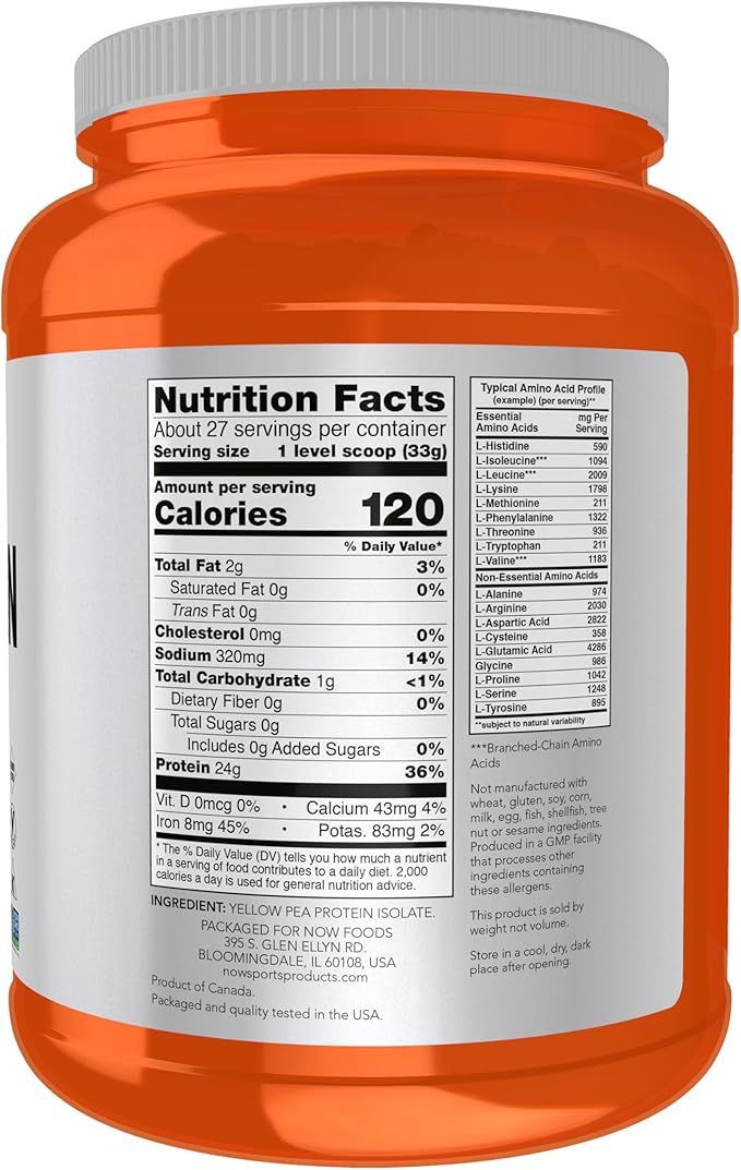 NOW Foods Sports Nutrition, Pea Protein 24 g, Fast Absorbing, Unflavored Powder, 2-Pound