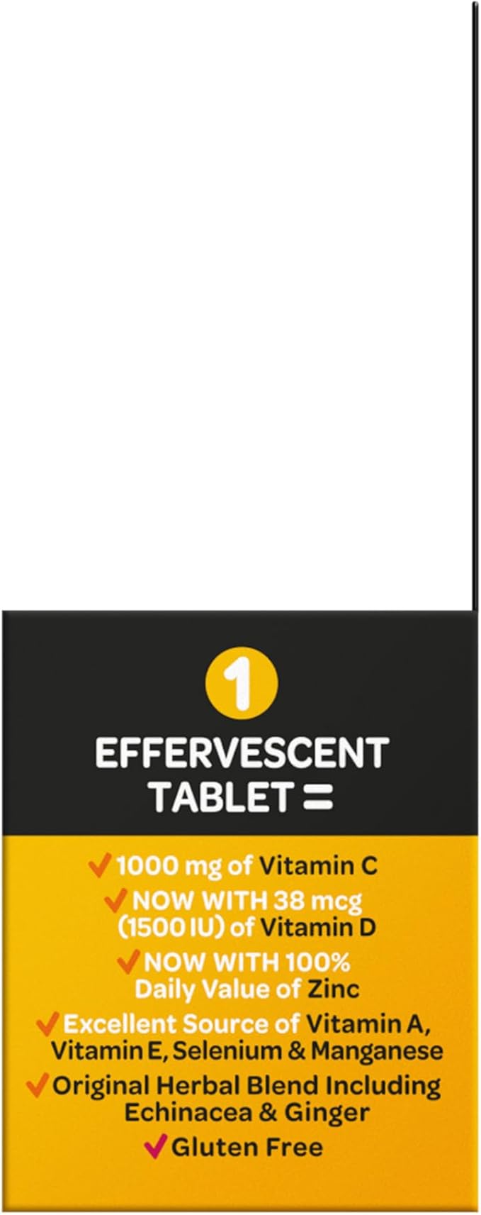 Airborne 1000mg Vitamin C with Vitamin D & Zinc, Sugar Free Multivitamin Immune Support Supplement, Antioxidants Vitamins A C & Vitamin E, 10 Effervescent Tablets, Zesty Orange Flavor