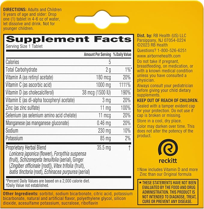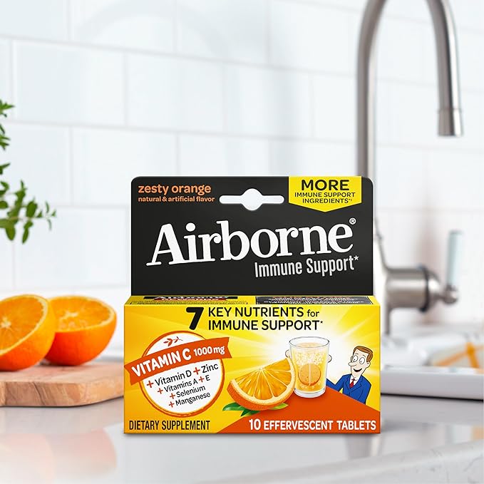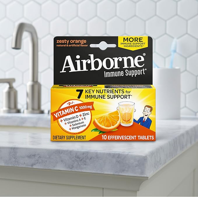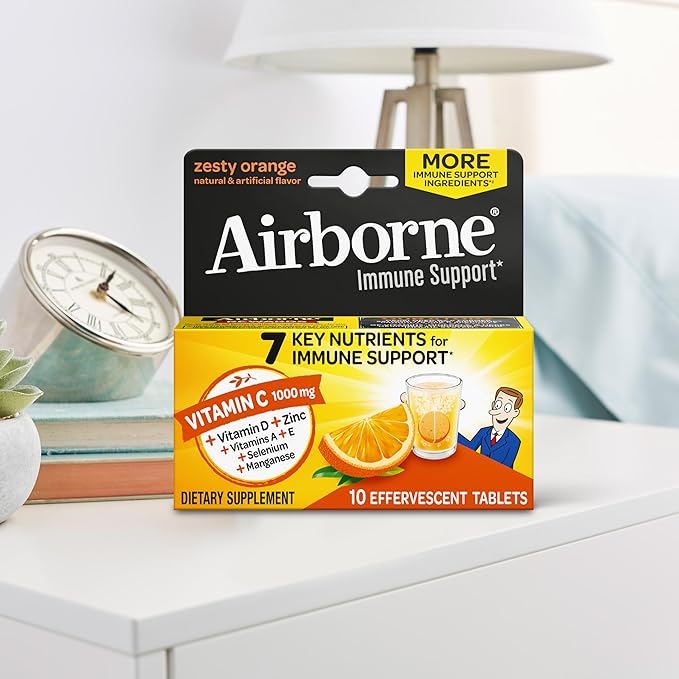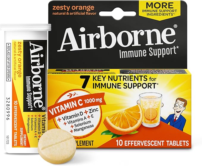 - VITAMIN C 1000mg: Airborne immune support effervescent tablets are packed with 1000mg Vitamin C per serving, which helps support your immune system.