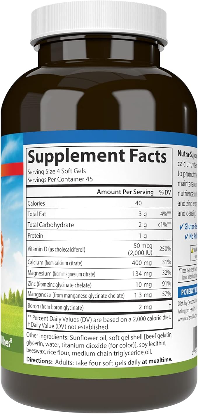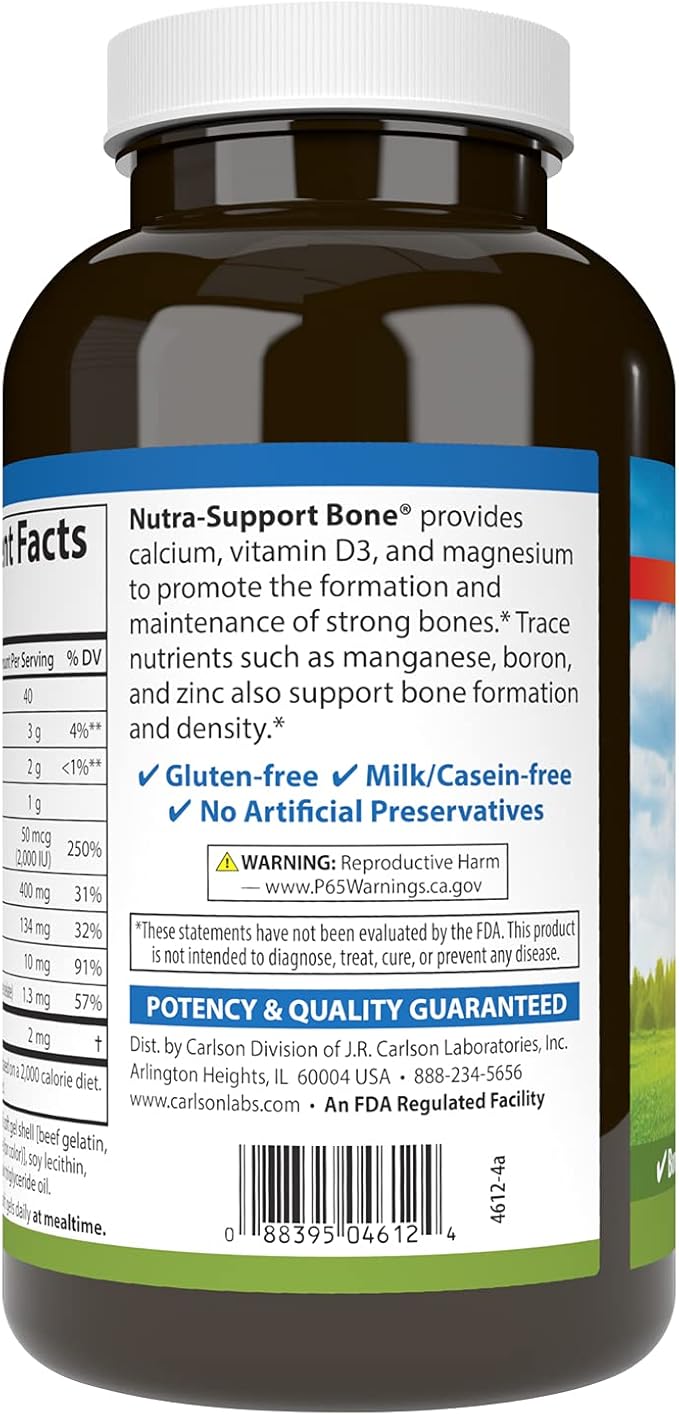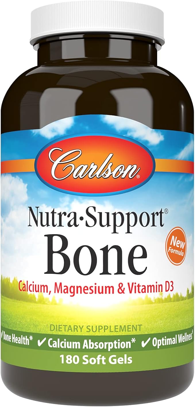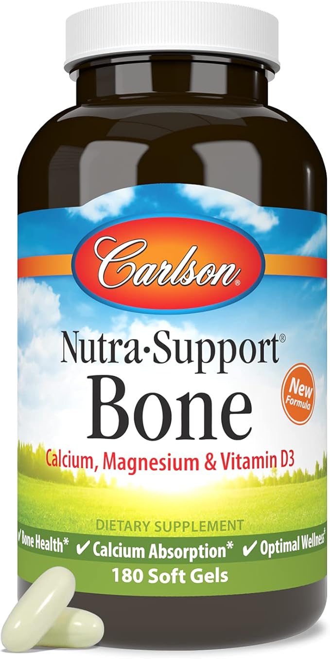 Carlson - Nutra-Support Bone, Calcium, Magnesium & Vitamin D3, Bone Health, Calcium Absorption & Optimal Wellness, 180 Softgels