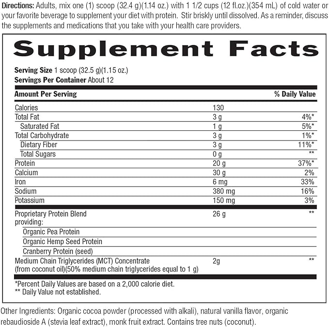 - 20g Complete Plant Protein Each scoop delivers 20 grams of high-quality protein from pea, hemp seed, and cranberry to help build and maintain lean muscle and keep you feeling satisfied.*