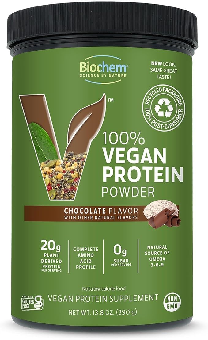 Biochem Vegan Protein Powder – 20g Plant-Based Protein with Pea, Hemp & Cranberry – Chocolate Flavor – Keto Friendly, Certified Vegan, Gluten Free, Kosher – 13.6 oz