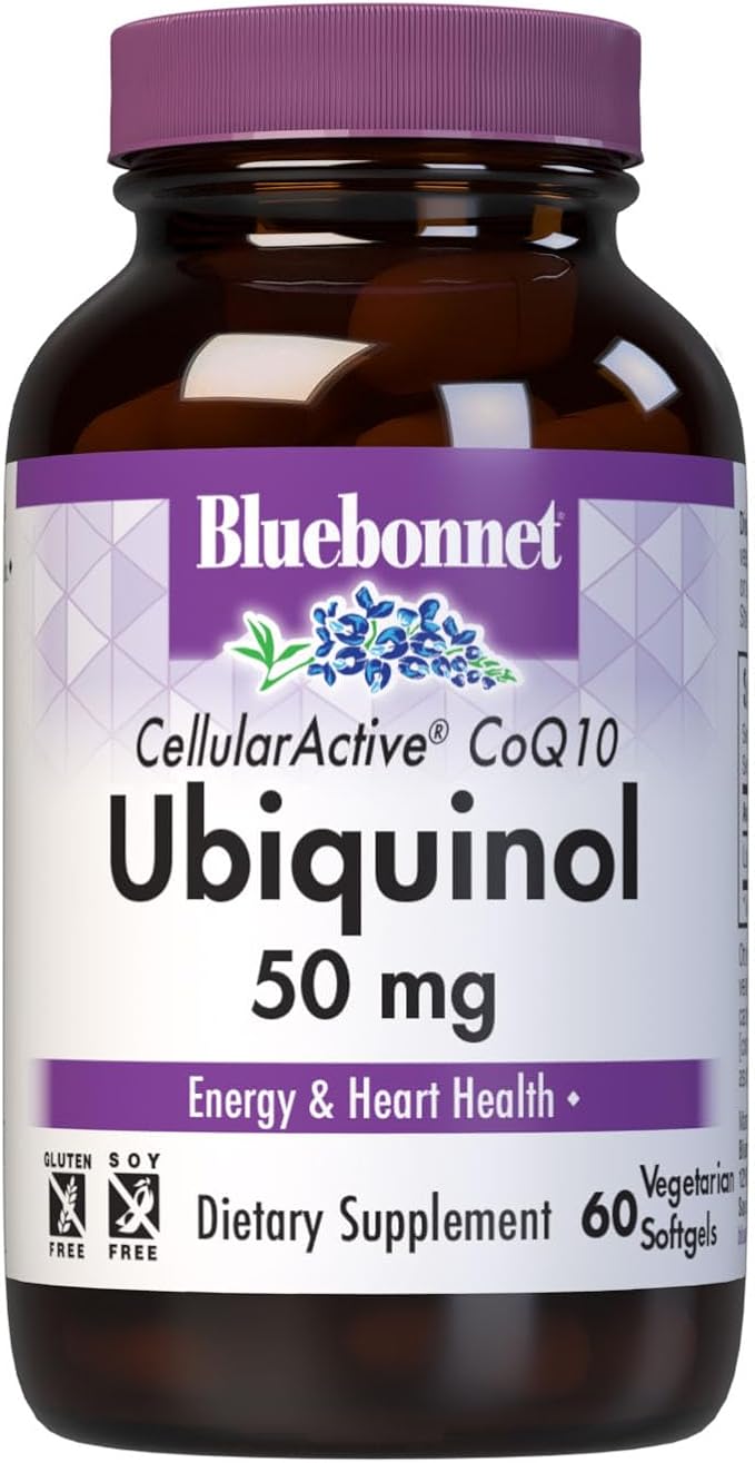 Bluebonnet Nutrition Cellular Active CoQ10 Ubiquinol 50 mg Vegetarian Softgels, Heart Health & Cellular Health, Ubiquinol from Kaneka, Non GMO, Gluten Free, Soy Free, Milk Free, 60 Vegetarian Softgels