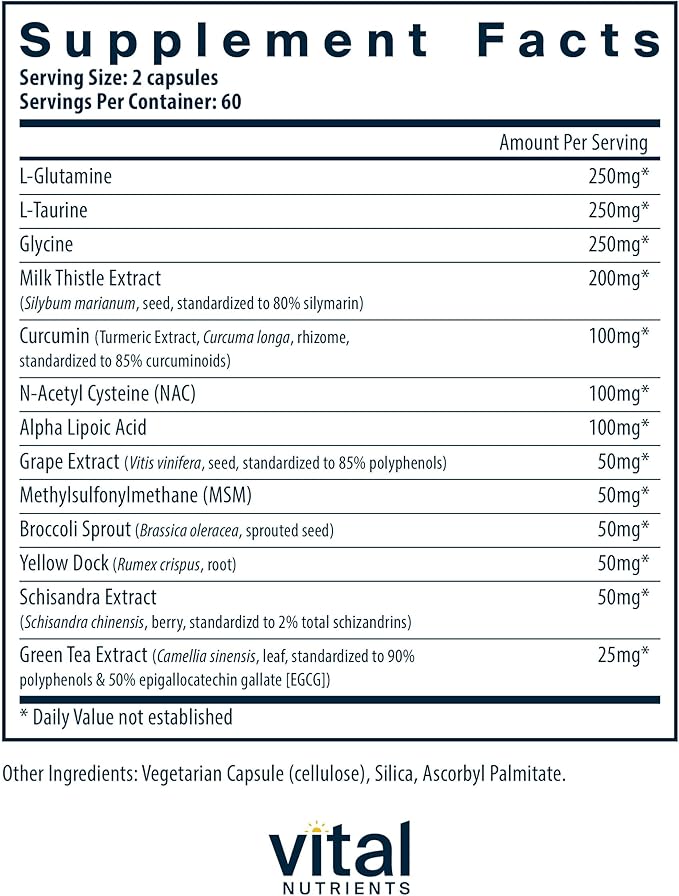 - High Antioxidant Content to Support Natural Immune Function: Our liver detox supplement contains amino acids alongside a wide variety of antioxidants through ingredients including L-glutamine, L-taurine, glycine, milk thistle, curcumin, NAC, ALA, green tea extract, and methylsulfonylmethane (MSM)*
