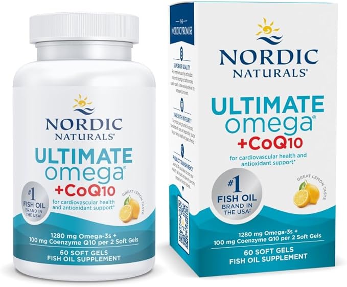Nordic Naturals Ultimate Omega + CoQ10, Lemon - 60 Soft Gels - 1280 mg Omega-3 + 100 mg CoQ10 - Heart Health, Cellular Energy, Antioxidant Support - Non-GMO - 30 Servings