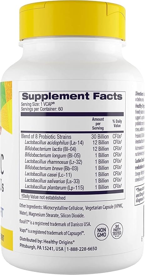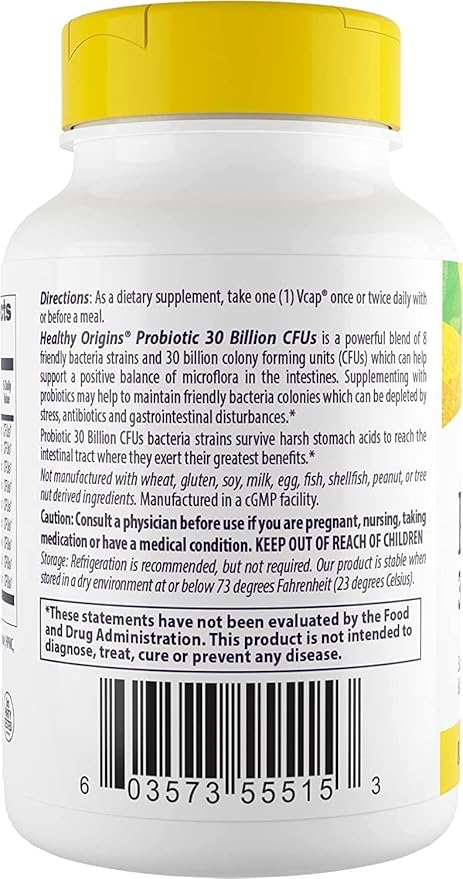 Healthy Origins Probiotic 30 Billion CFU's (Shelf Stable, Non-GMO, Gluten Free, Digestive Health, Gut Health, Immune Support), 60 Veggie Caps