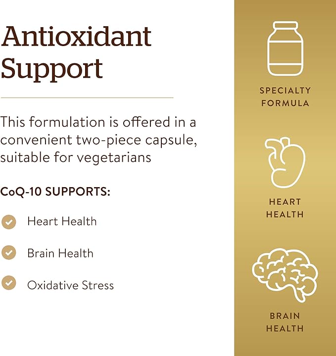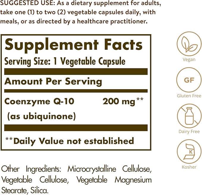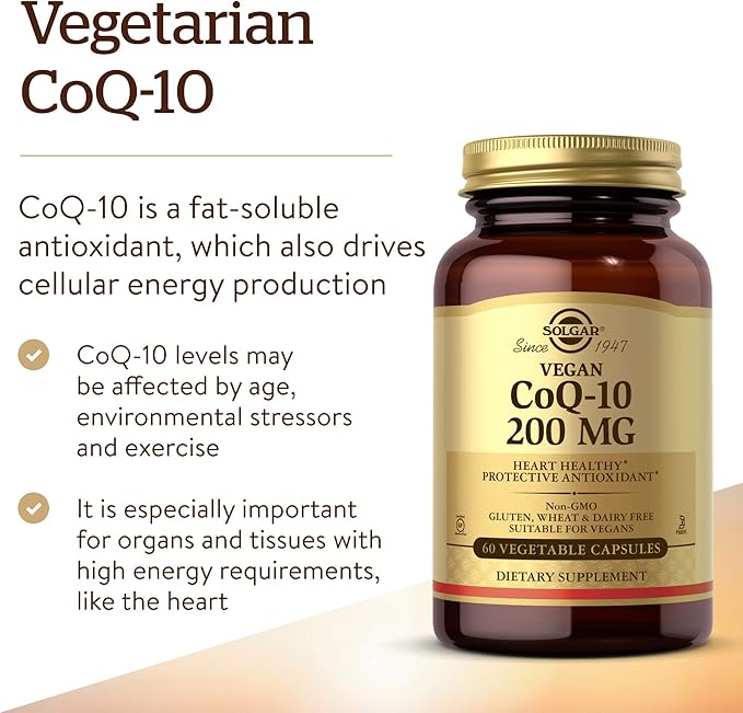 Solgar Vegetarian CoQ-10 200 mg, 60 Vegetable Capsules - Heart Healthy, Protective Antioxidant - Coenzyme Q10 (CoQ-10) Supplement - Vegan, Gluten Free, Dairy Free, Kosher - 60 Servings