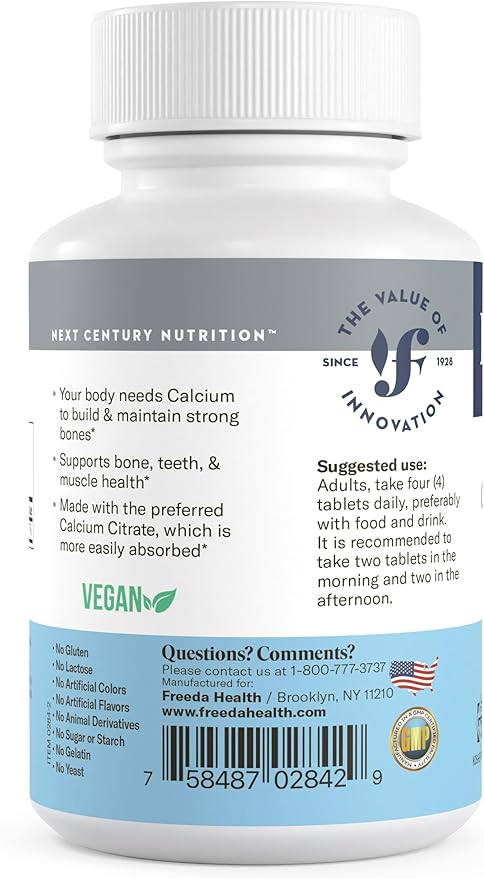 - MADE IN THE USA & THIRD-PARTY TESTED – Manufactured in a GMP-certified facility in the USA, Freeda’s Calcium Citrate is third-party tested for purity and potency. Trusted since 1928 for premium supplements.*