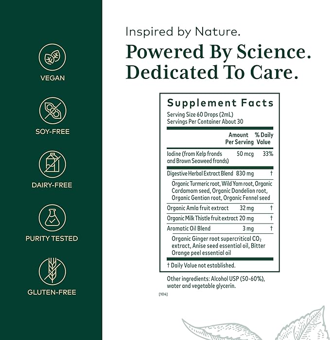 - Features Organic Herbal Blend: Combines turmeric root, dandelion, fennel seed, and other botanicals to support digestive enzyme function and upper GI tract health*