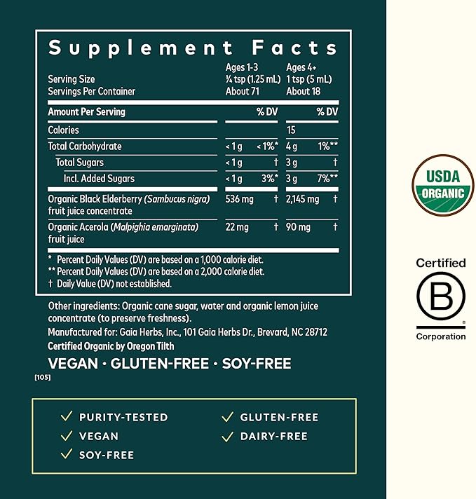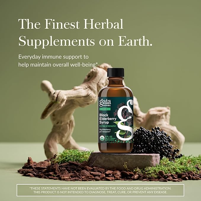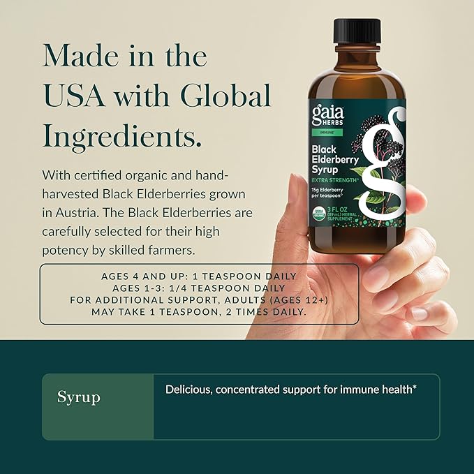 Gaia Herbs Black Elderberry(Sambucus Nigra) Syrup Extra Strength-Immune Support Supplement-Made with Organic Black Elderberries for Immune System-USDA Certified Organic Formula-3 Fl Oz(18-Day Supply)