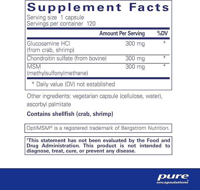 Pure Encapsulations Glucosamine Chondroitin with MSM - Supports Joint Health & Normal Cartilage Formation* - Maintains Enzyme Activity - Gluten-Free & Non-GMO - 120 Capsules