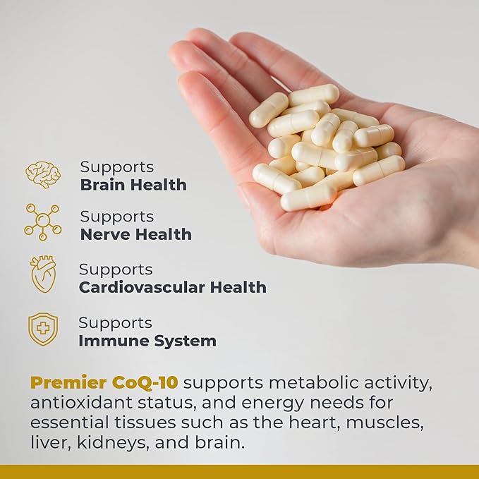 - PREMIER COQ10 SUPPLEMENT - Premier Research Labs Coenzyme Q10 is made with a natural fermentation process that yields 100 mg per capsule of the highly bioavailable, preferred trans isomeric form