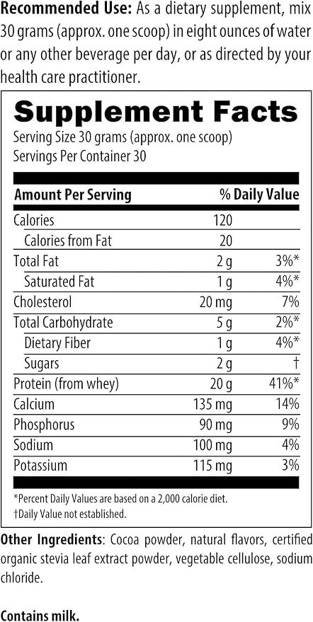 - 20 Grams of Grass-Fed Whey - Great-tasting, high protein, low carbohydrate, functional food powder.
