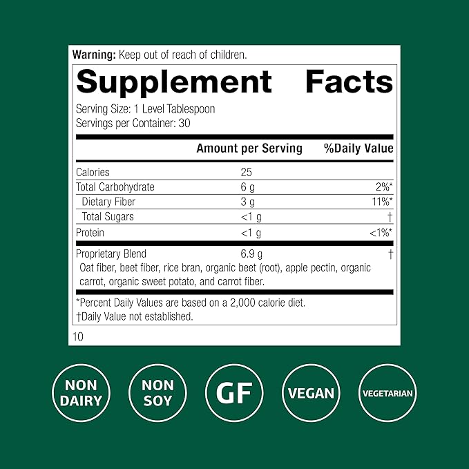 Standard Process - Whole Food Fiber - Daily Fiber Supplement for Digestive Health & Gut Support - High Fiber Powder with Soluble & Insoluble Fiber - Non-Dairy, Non-Soy & Gluten-Free - 7 oz (210 g)