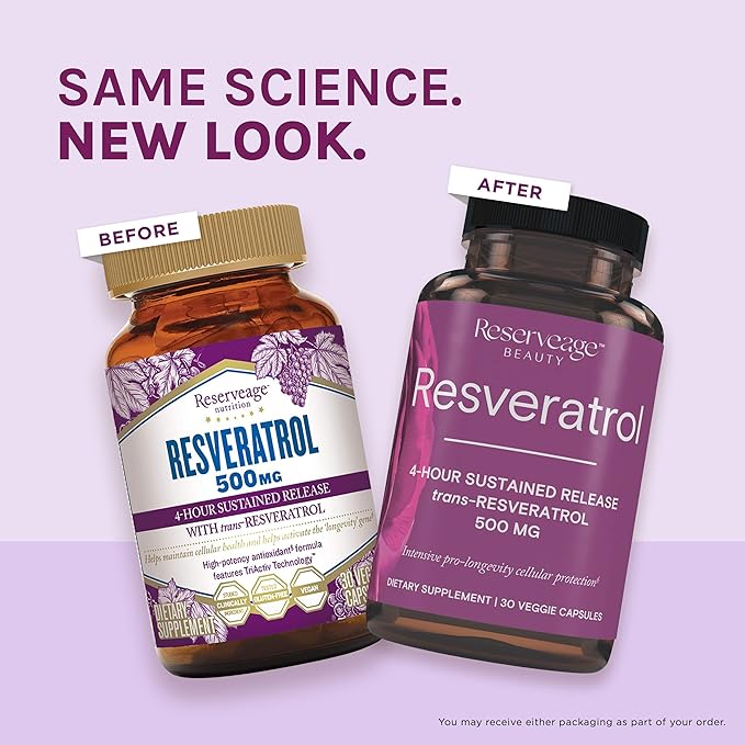 Reserveage Beauty, Resveratrol 500 mg, Antioxidant Supplement for Heart and Cellular Health, Supports Healthy Aging and Immune System, Paleo, Keto, 30 Capsules
