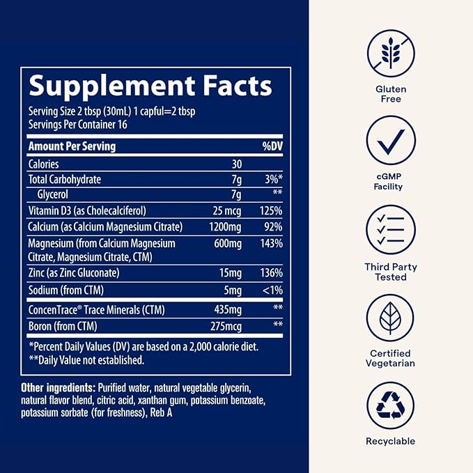 Trace Minerals | Liquid Cal/Mag/Zinc | Calcium, Magnesium, Zinc, Vitamin D3 Supplement | Supports Normal Tissue, Muscle, and Bone Density | Natural Piña Colada Flavor | 16 Servings, 16 fl oz.